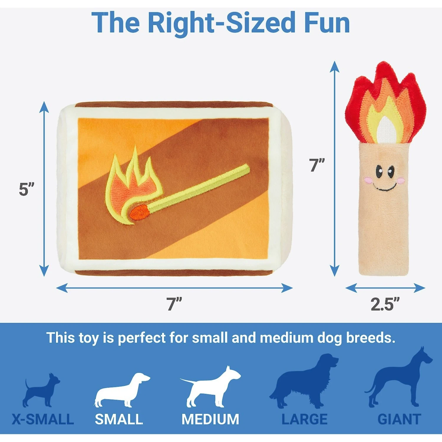 - Plush match box and match toy set brings on the playtime fun with squeakers and crinkle paper.