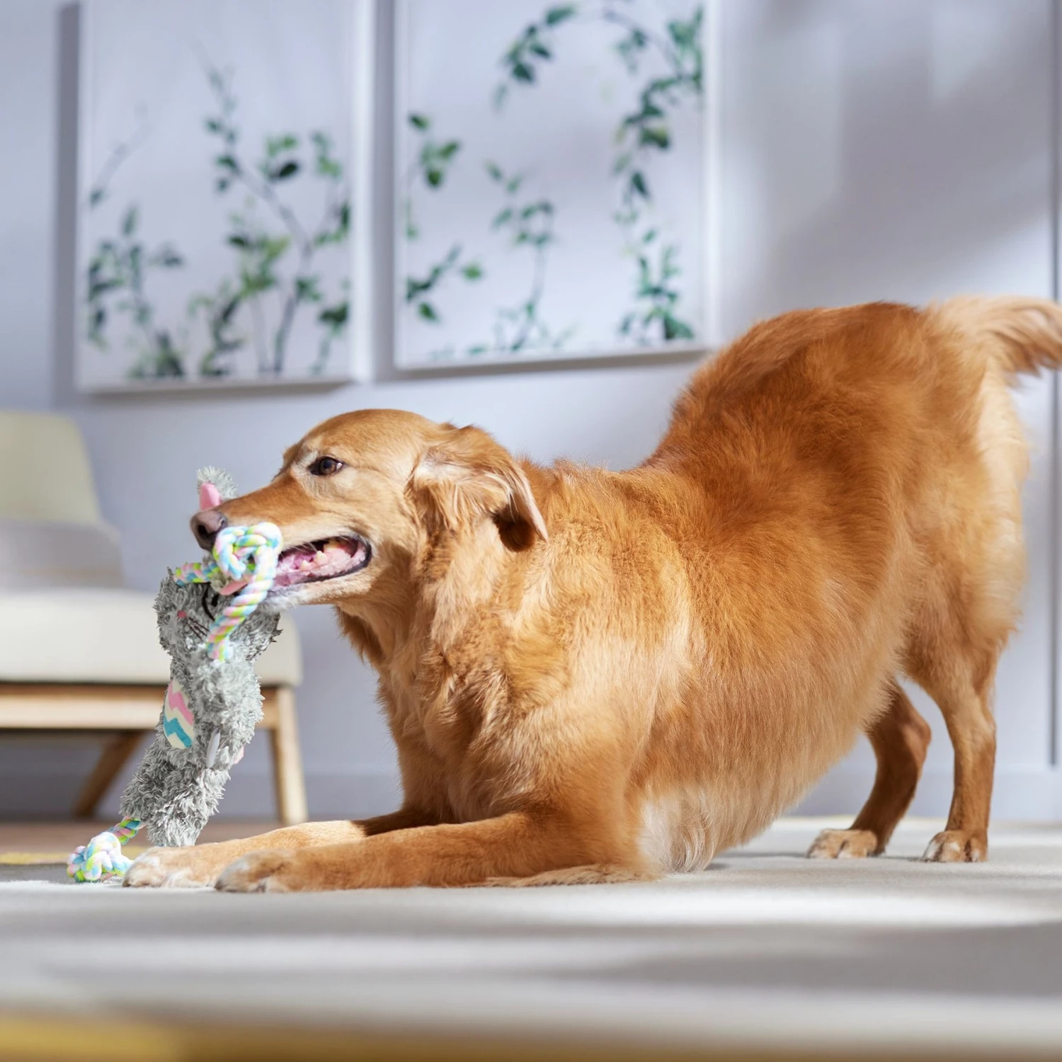 - This Easter Bunny adds rope to the standard plush toy, combining two of your pupโs favorite ways to play in one exciting toy.