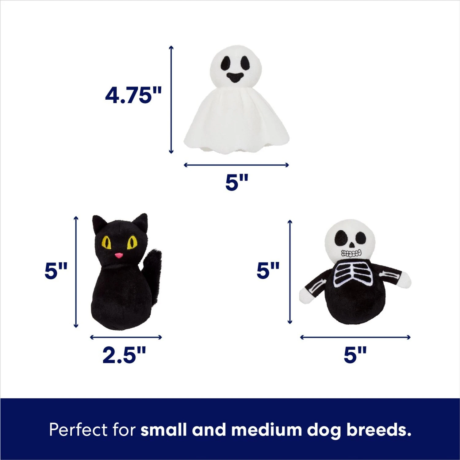 - Plush puzzle toy set comes with plush haunted shack and three insertable toysโa ghost, a black cat and a skeleton, each with a squeaker to keep your dogโs attention.