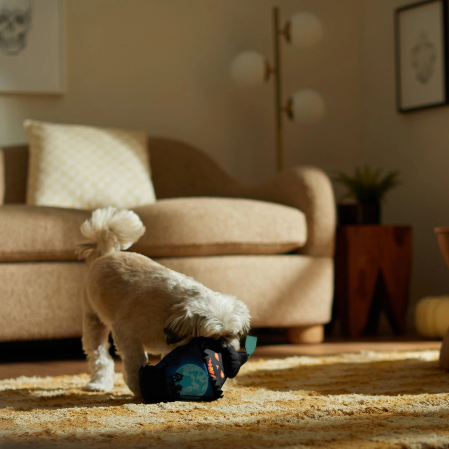 - This Halloween lantern plush toy features three squeakers, crinkle paper, and soft textures to upgrade playtime.