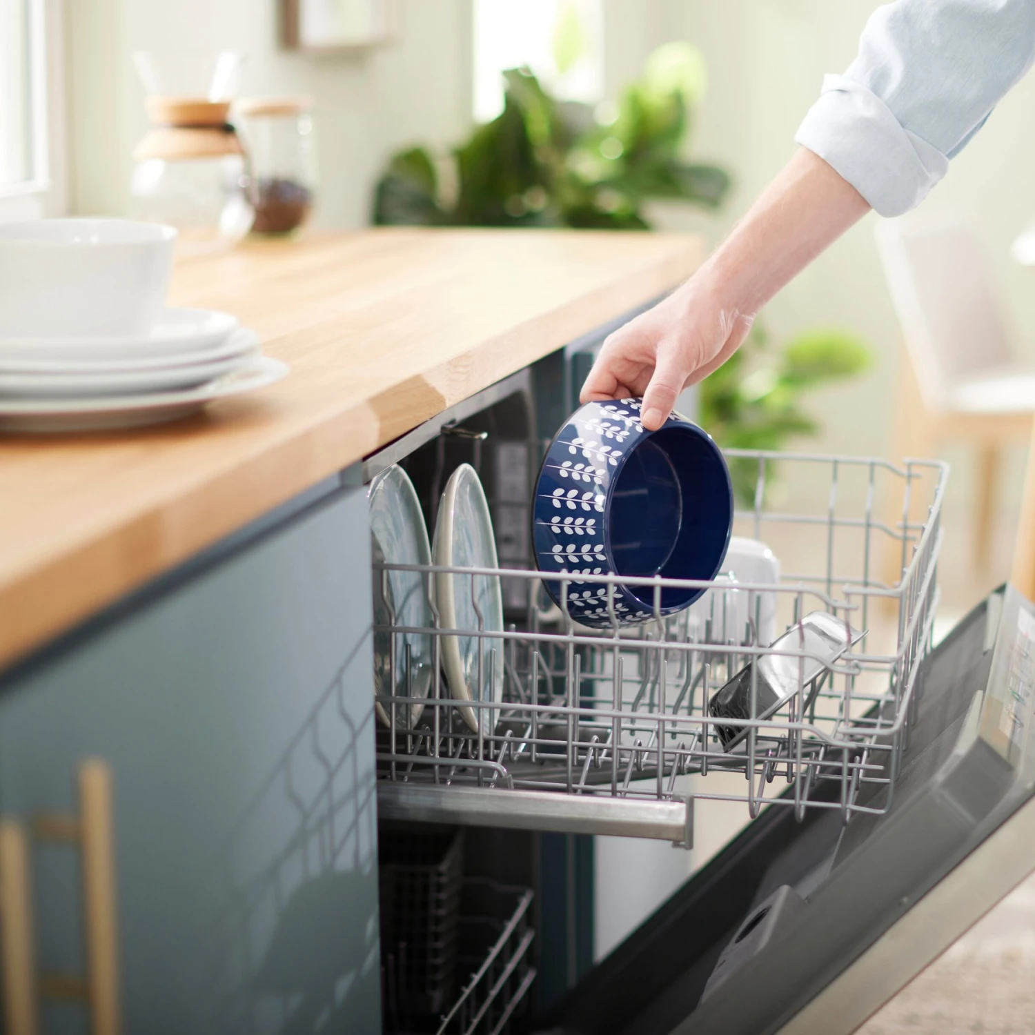 - The stainless-steel bowl easily comes out of the decorative base for cleaning.