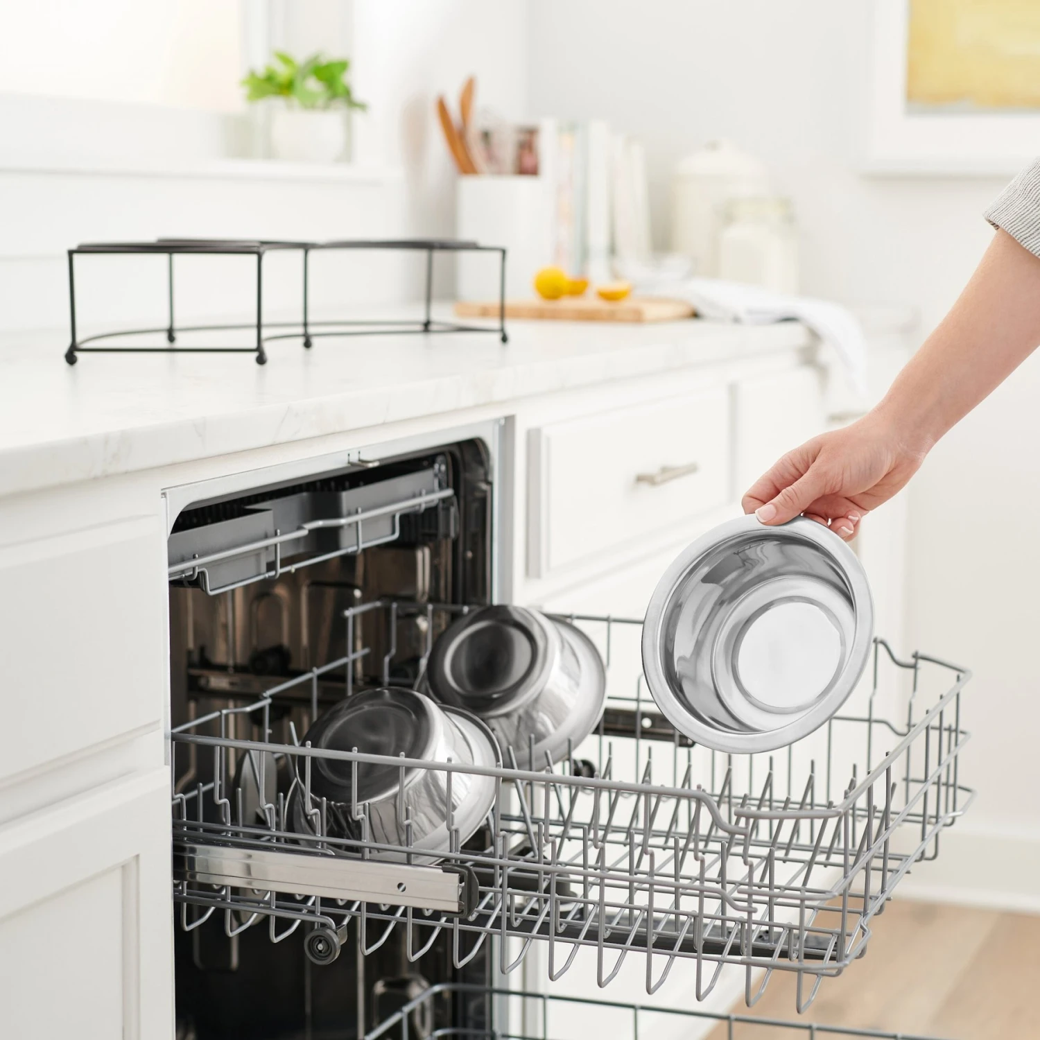 - Care instructions: Removable stainless-steel bowls are hand washable and dishwasher safe.