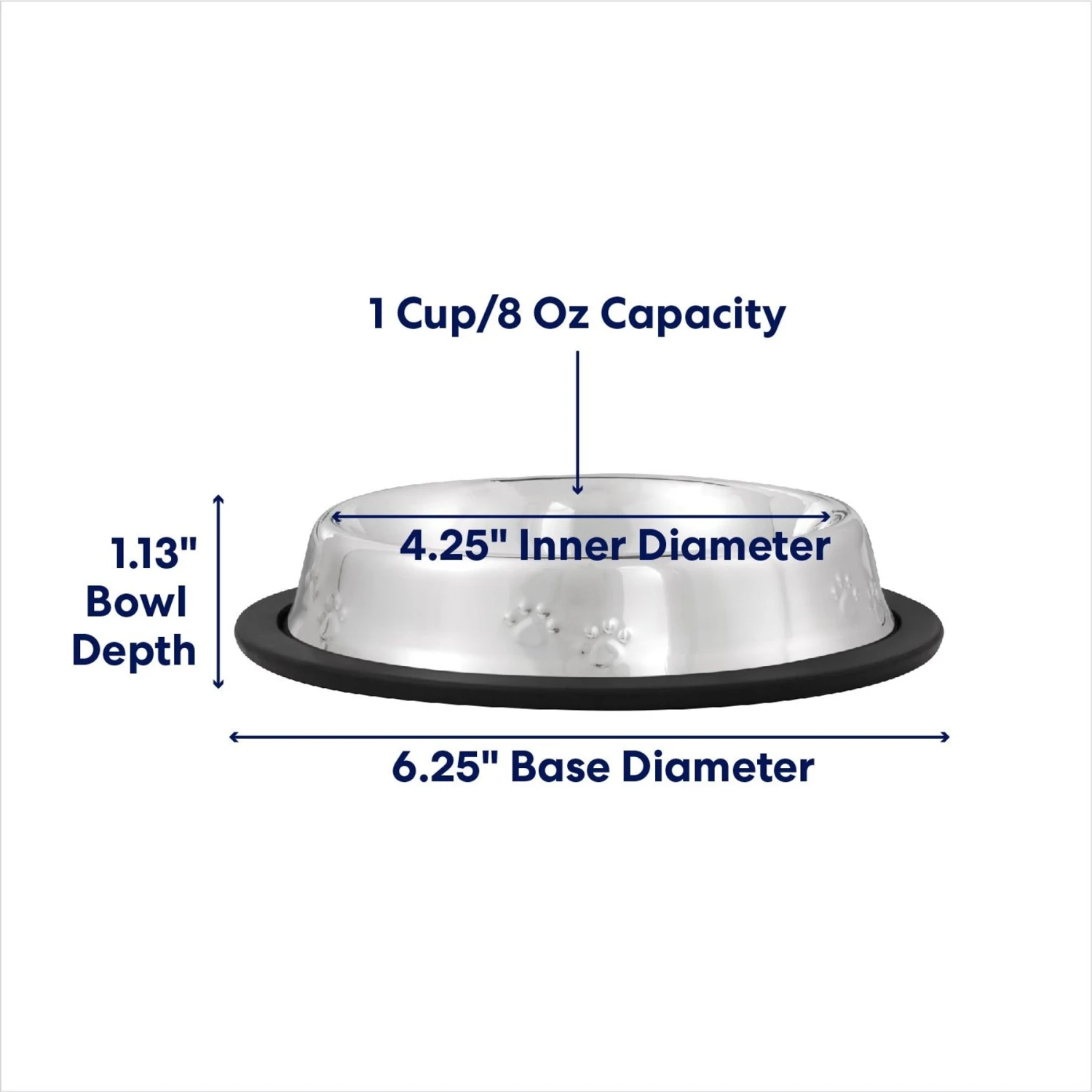 Serve up dinner in style with the Frisco Non-Skid Stainless Steel Pet Bowl. The smart design helps keep kibble in its placeโin the bowlโand features a wide rubber base that keeps it from tipping, even if your pal is extra hungry. Stainless steel is stain-proof and easy to clean by hand or in the dishwasher. Plus, the adorable embossing adds a stylish touch.